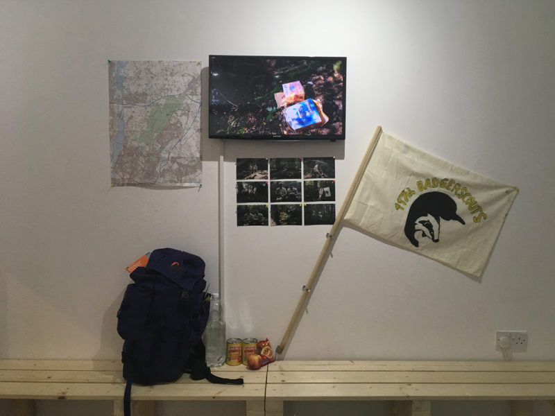 Billy Sassi, the 117th Badgerscouts is an open artists' collective taking the form of a scout troop, examining the dynamics of leadership and teamwork and the performance of identity. Our first expedition was to the Epping Forest, where we we earned our orienteering badge (we got lost), camping badge (we put up a tent) and survival skills badge (we cooked ravioli). Documentation from that expedition was presented at 'Pre-Sliced Orange Segments' at Light Eye Mind, October 2017.