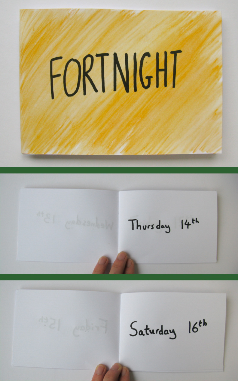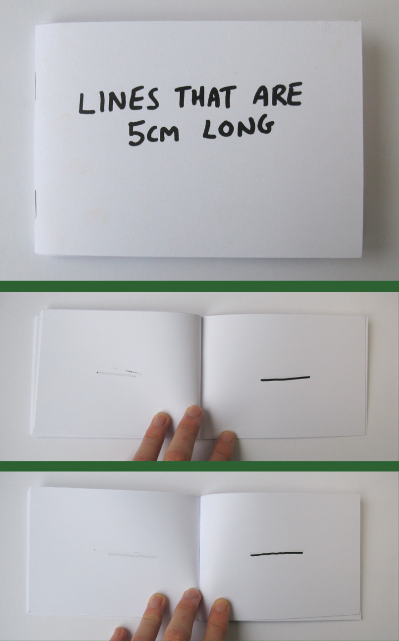 I also made a series of small zines that explored the relationship between hand-drawing something or using a computer to draw it. 'Lines that are 5cm long' is a futile attempt at mathematical accuracy, and 'Fortnight' is a slow calendar written day by day. Like the ladders and my painting series the year before, there is always the presence of the 'real' form of something, and how I have failed to replicate it through my methods.